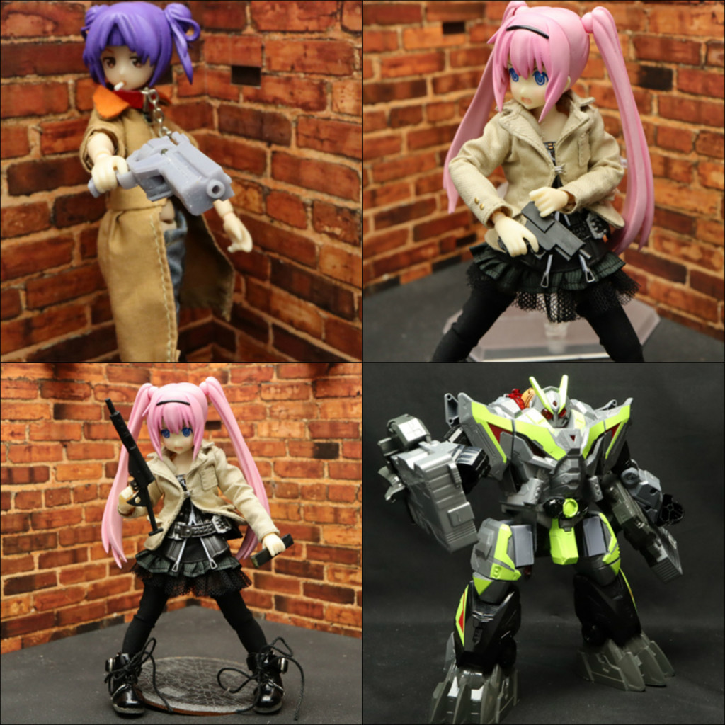 この記事執筆時点(2021/5)では恐らく1/12が乗れる人型機動兵器で世界一安い玩具だと思いますが、こいつ股関節に回転軸しかない上に腰パーツと足が干渉するので、表情がつけづらいんですよねぇ。