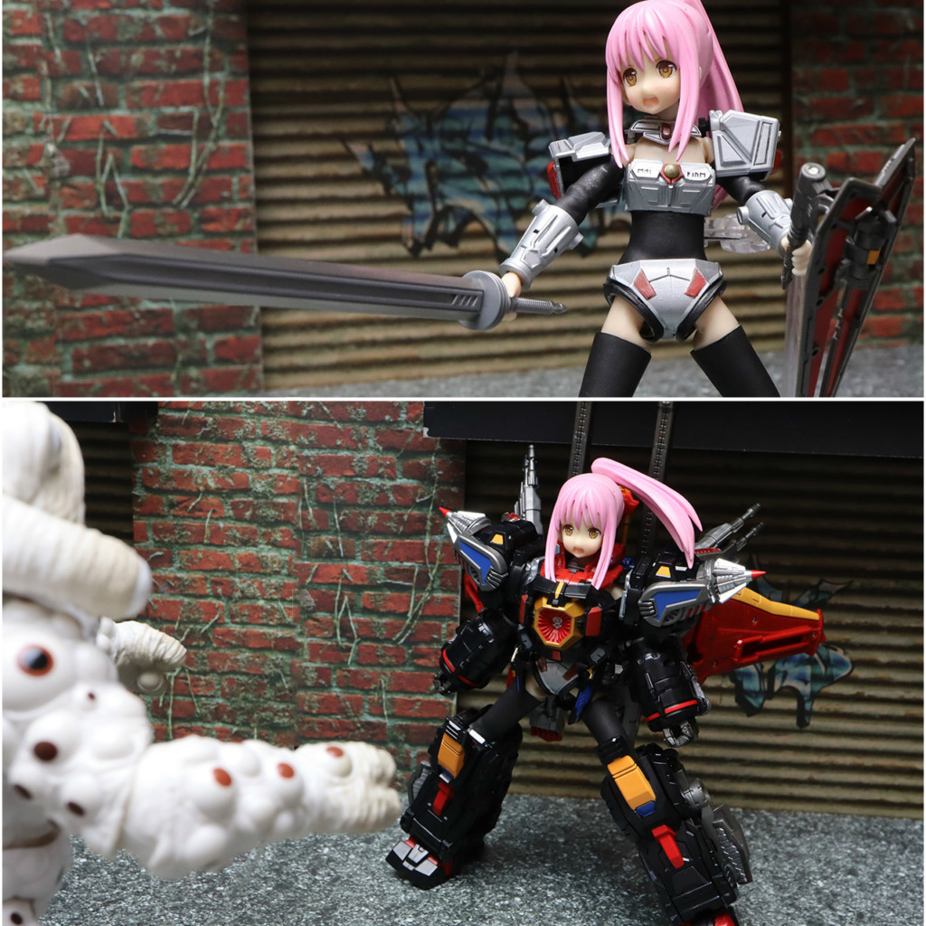 アーマーの上からバトルハンガーを本来の合体とほぼほぼ同じような感じで装着できます。