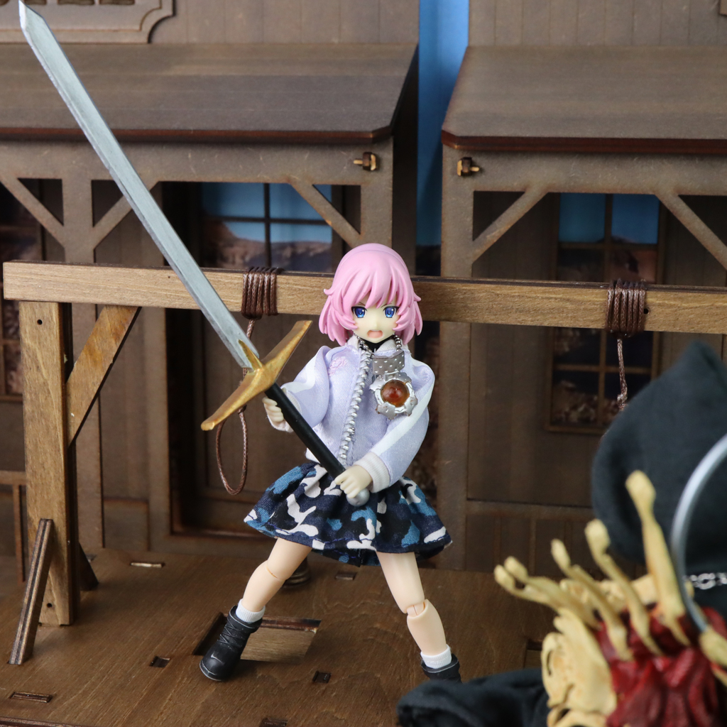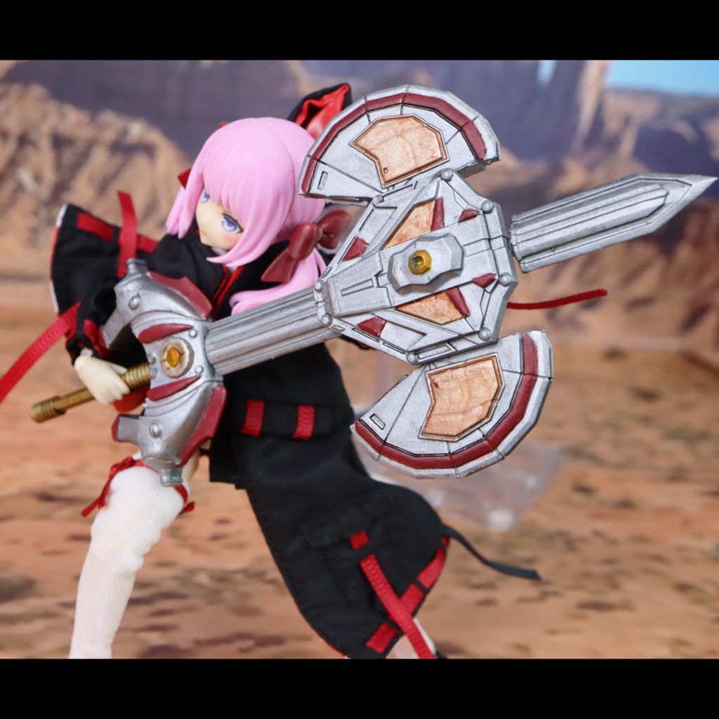 割と太目の柄(4mm円柱)にしてるので、ピコニーモの武器持ち手でもしっかり保持できるのがそれ魅力。