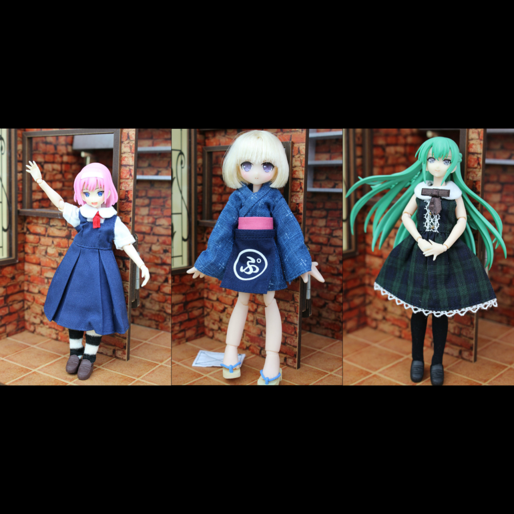 サロペットスカートの紐がどの素体でもあまり気味になるのもちょっと気になるかなぁ。着せ方悪いだけっていう可能性もありますが。