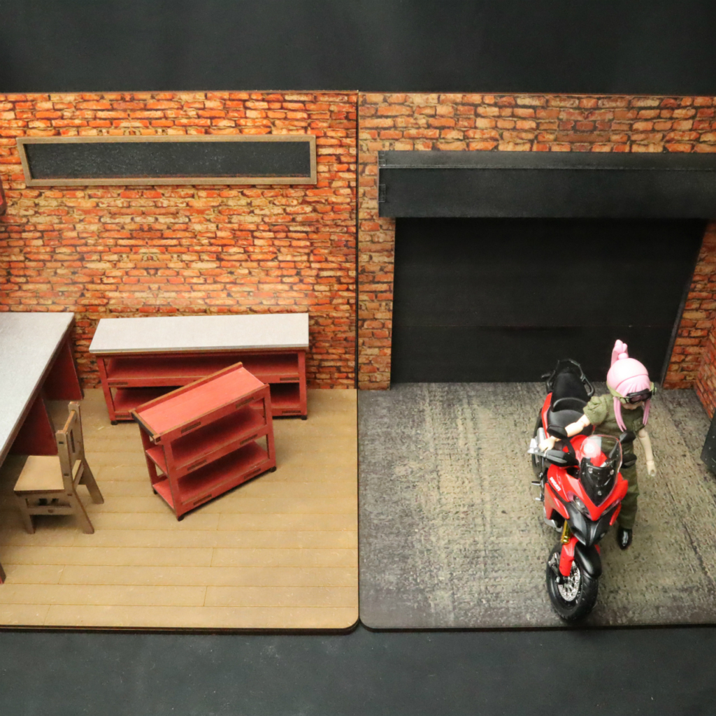 2.1/10スケール 【L型・アメリカンガレージ(赤レンガ)左側】デビュープライス★初回ロット限定家具付