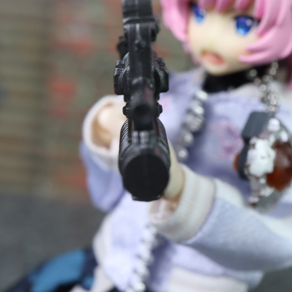 銃持ち手でグリップを、武器持ち手でスライドを一応持てます。