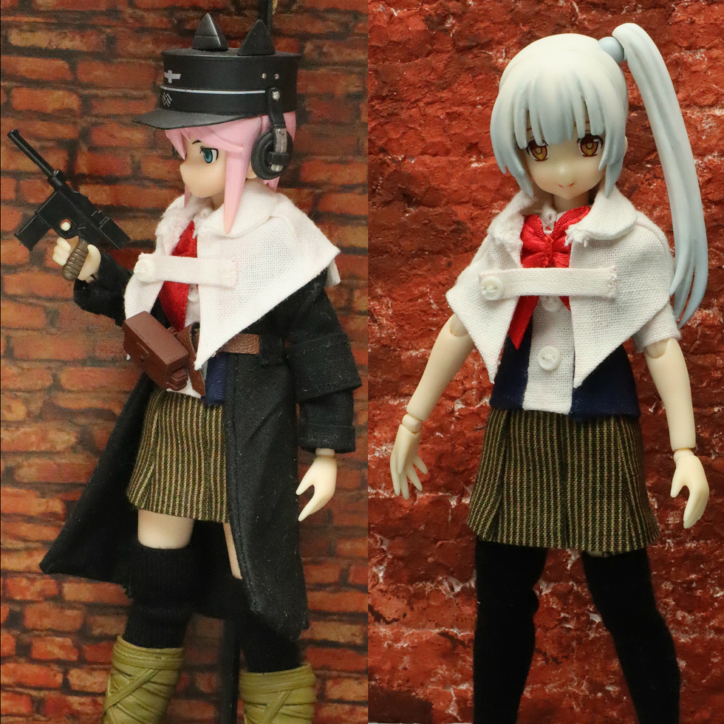 ケープ、セーラーカラー、コート、上着、スカート、腕章ってな感じの構成になってます。
