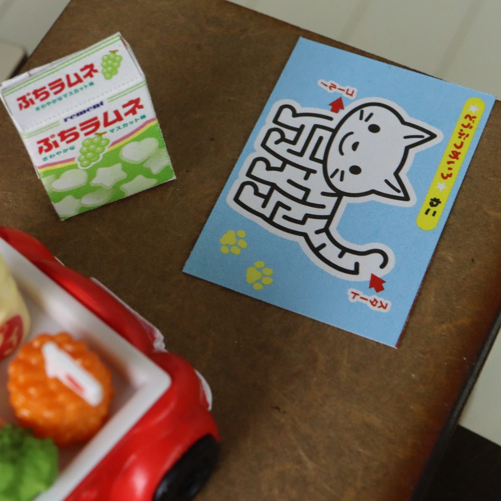 冊子類はおやつの箱と子供が喜びそうな迷路になってます。