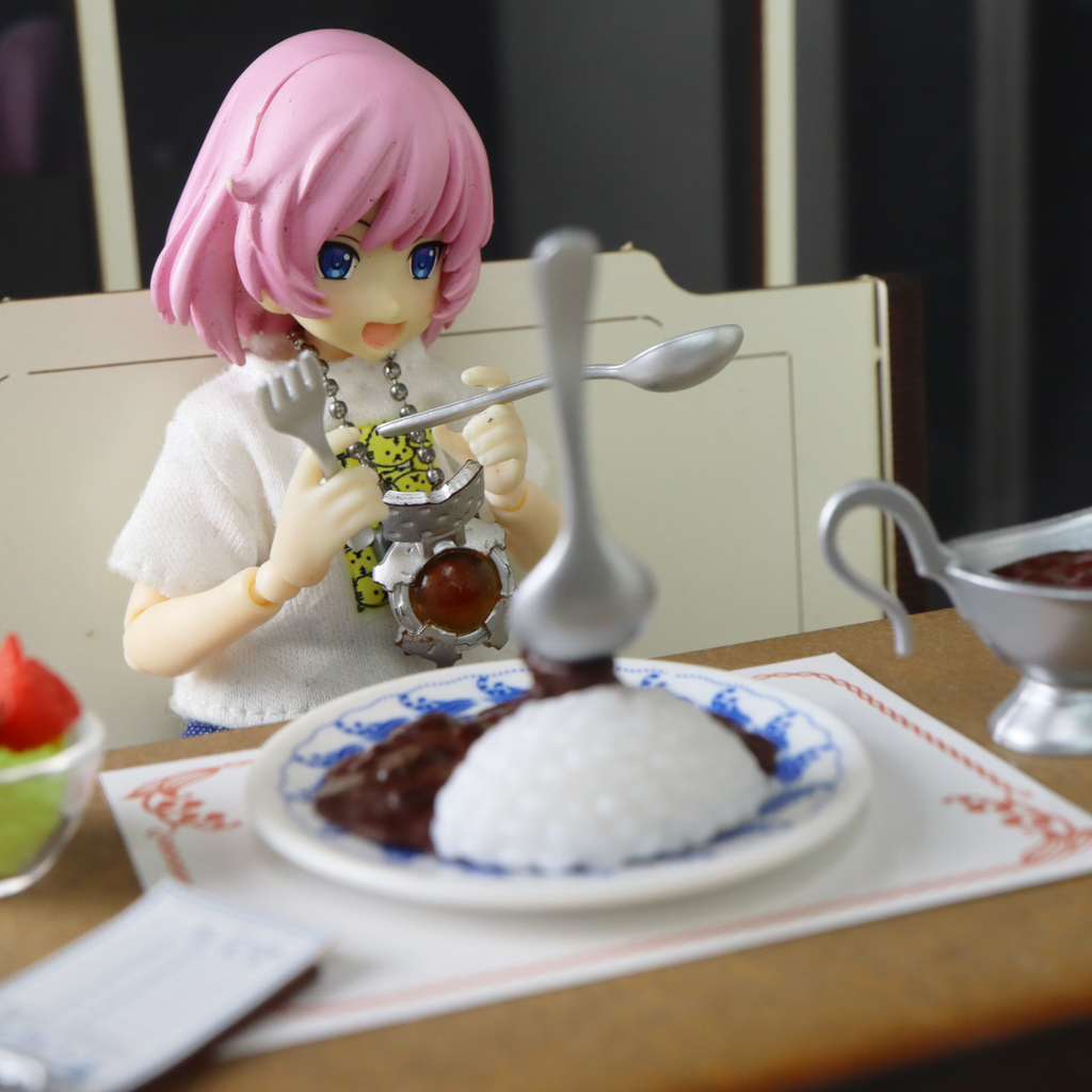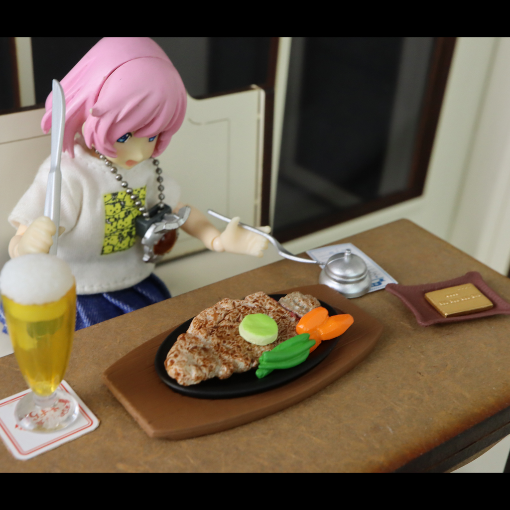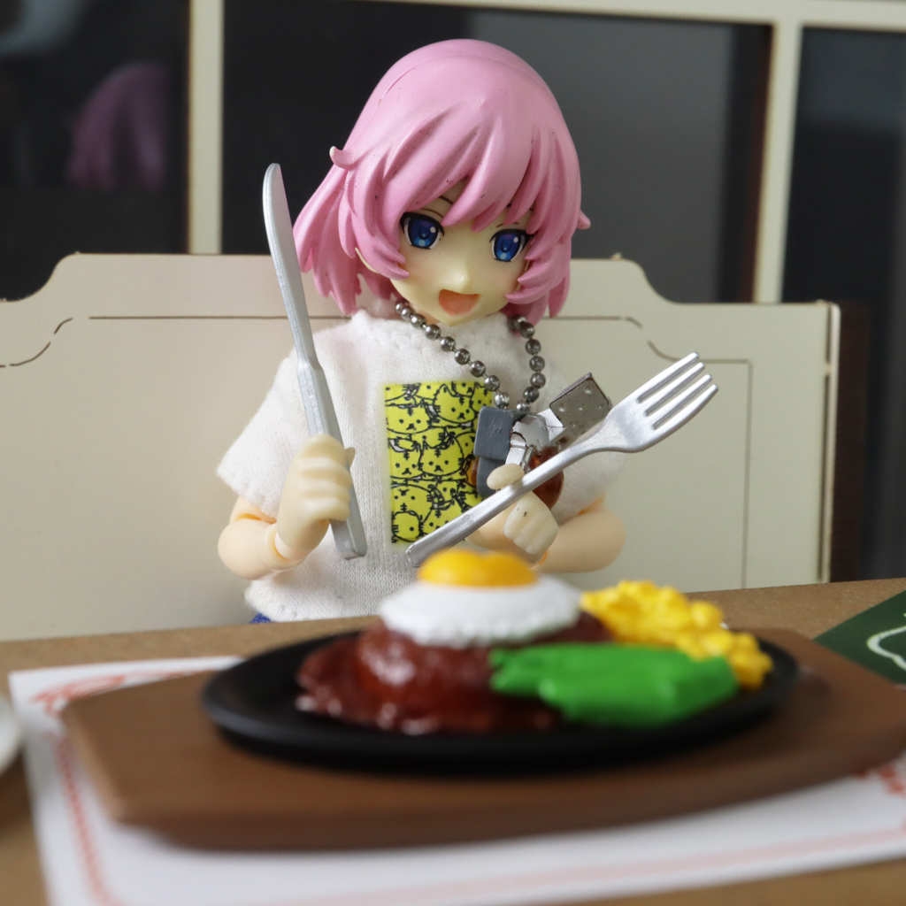 ナイフとフォークがでかいですが、プレートはそこまで違和感もない…か?